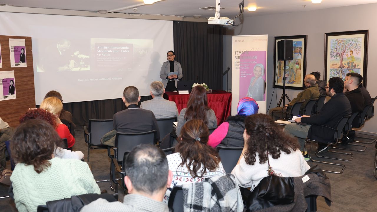 Nilüfer Belediyesi tarafından düzenlenen 'Tematik Buluşmalar' söyleşisinin bu ayki konuğu, Bursa Uludağ Üniversitesi (BUÜ) Fen-Edebiyat Fakültesi Tarih Bölümü Öğretim Üyesi Doç. Dr. Hacer Karabağ Arslan oldu. Nazım Hikmet Kültürevi'nde düzenlenen 'Atatürk Bursa'sında Modernleşme: Lider ve Şehir' başlıklı söyleşide Arslan, Atatürk'ün Bursa'ya gerçekleştirdiği ziyaretlerin arka planını ve kentin sosyal, ekonomik ve kültürel değişimini katılımcılara aktardı.