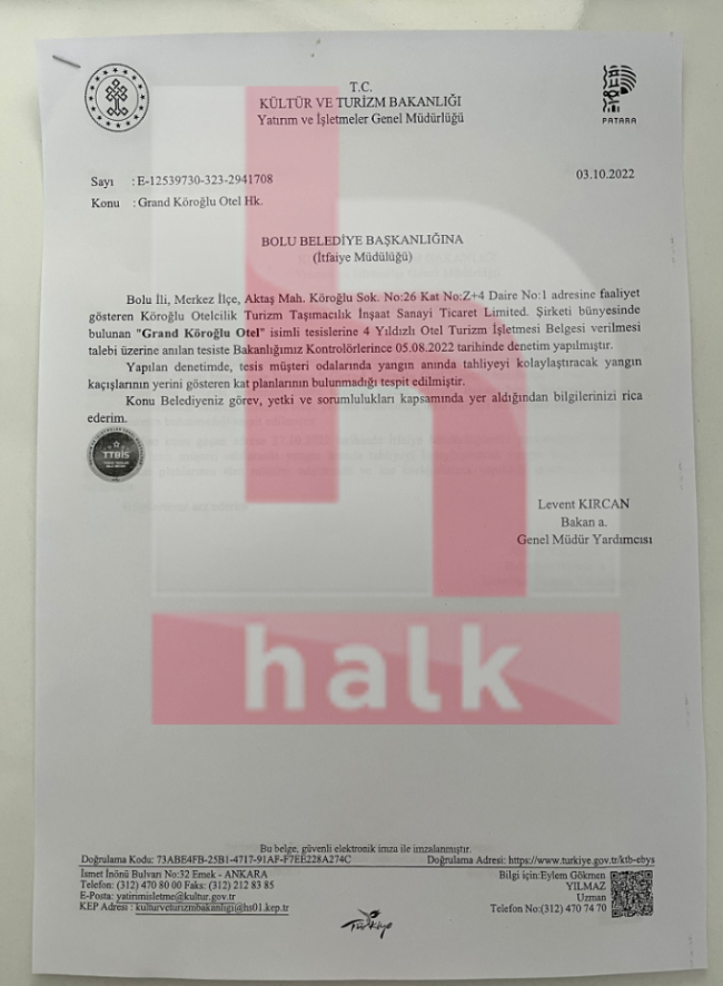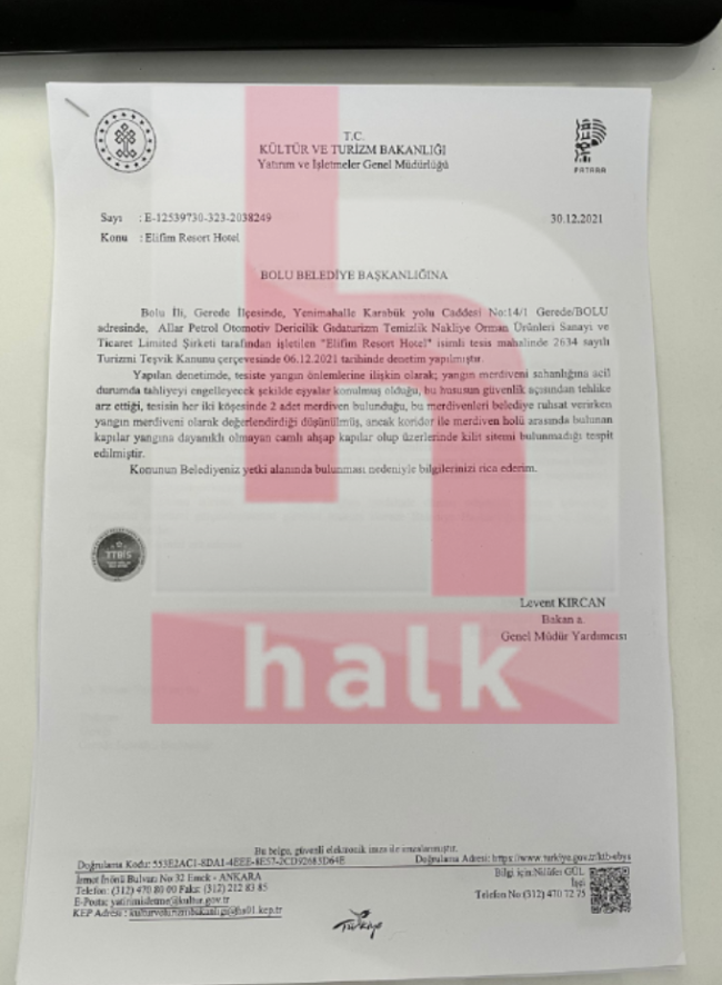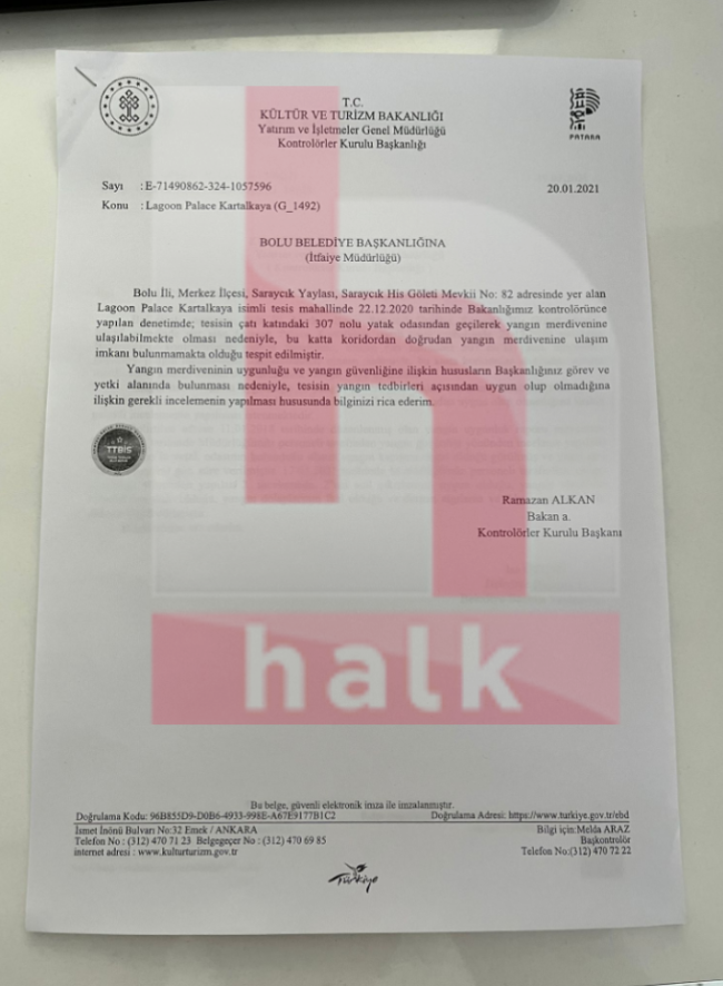Halktv.com.tr’nin ulaştığı belgeler, bakanlığın, facianın yaşandığı oteldeki sorumluluğunu net bir biçimde ortaya koydu. Bakan Mehmet Nuri Ersoy’un söylediği “Biz sadece otel yıldızına bakıyoruz” sözlerinin ise ortaya çıkan belgelerle gerçeği yansıtmadığı anlaşıldı.