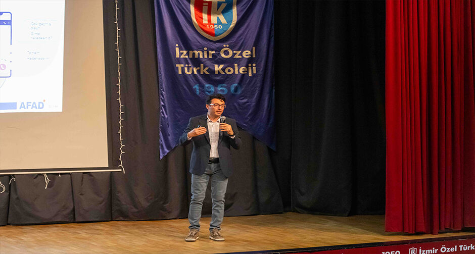 İzmir Özel Türk Koleji Bornova Kampüsü'nde düzenlenen derste Bornova Belediyesi Afet İşleri ve Risk Yönetimi Müdürü Sinan Can Öziçer, öğrencilere temel afet bilinci konusunda kapsamlı bilgiler verdi.