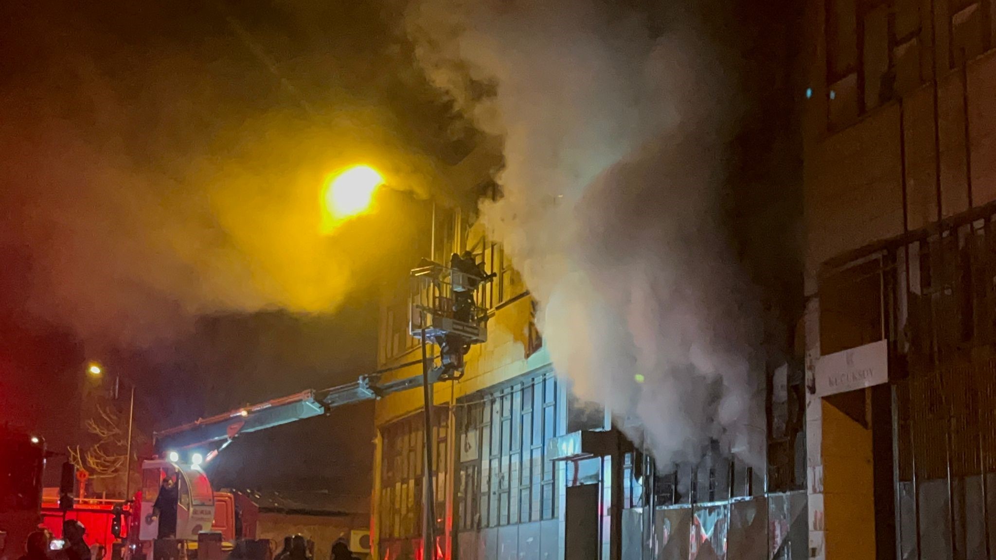 Polis ekipleri çevrede güvenlik önlemi alırken, itfaiye ekipleri yanan 3 katlı atölyeye müdahale etmeye başladı.