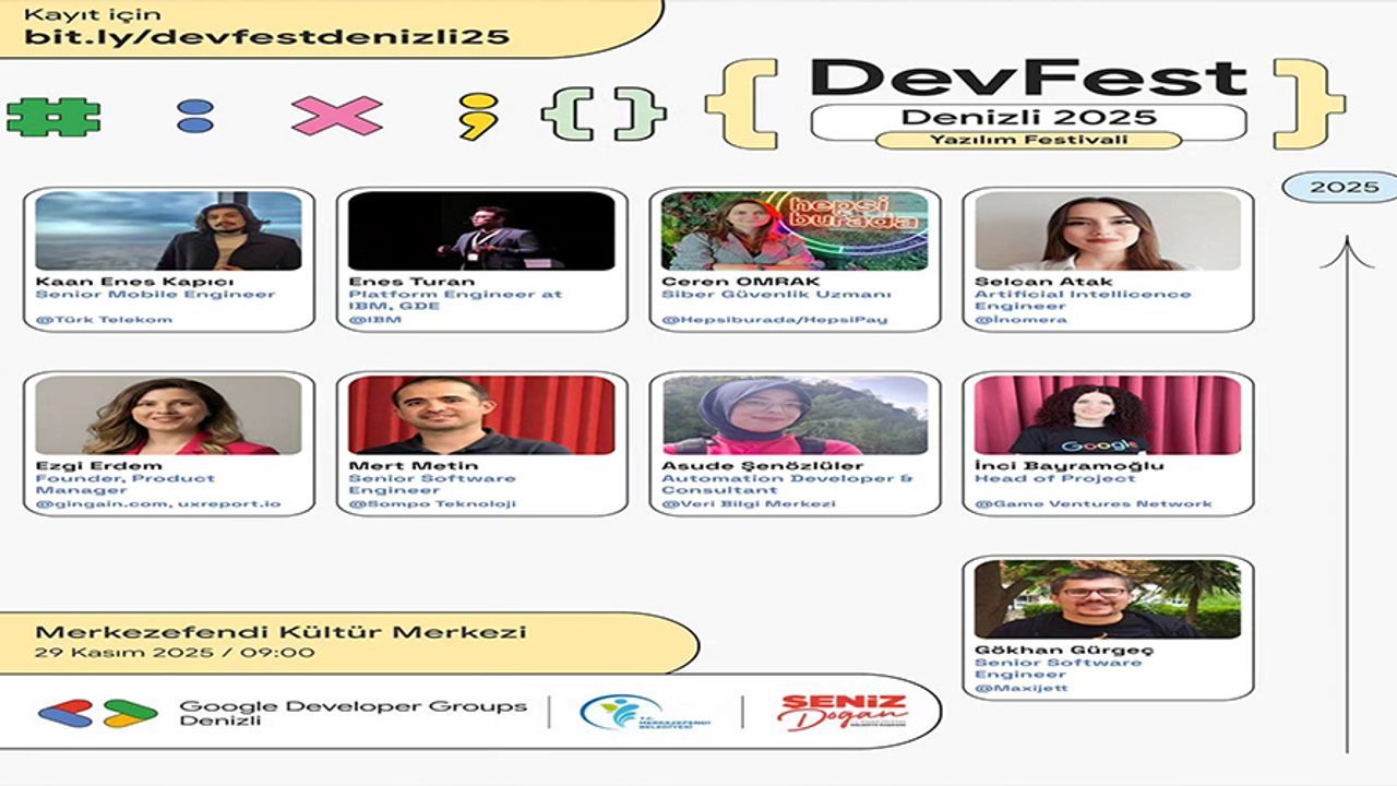 Gençlerin, girişimcilerin ve teknolojiyle ilgilenen herkesin kendini geliştirebileceği ortamlar oluşturmayı çok önemsediklerini belirten Merkezefendi Belediye Başkanı Şeniz Doğan, 'İlçemizde bilginin, yeniliğin ve üretimin önünü açan etkinliklere ev sahipliği yapmaktan büyük bir memnuniyet duyuyoruz. DevFest Denizli 2025, sadece teknolojiyi konuşacağımız bir gün değil; aynı zamanda gençlerimizin yeni fikirlerle, uzmanlarla ve sektörün önde gelen isimleriyle buluşacağı önemli bir platform olacak. Tüm hemşehrilerimizi bu büyük teknoloji şölenine katılmaya, birlikte öğrenmeye ve geleceği birlikte şekillendirmeye davet ediyorum' dedi.