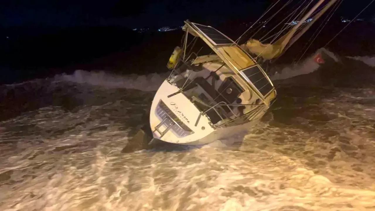 Muğla'nın Milas ilçesinde etkili olan kuvvetli fırtına, kıyıda demirli milyonluk tekneyi karaya sürükledi.