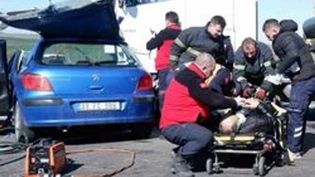 Edirne’de kamyonla çarpışması sonucu hurdaya dönen otomobilde sıkışan yaralıları kurtarmak için itfaiye ekipleri zamanla yarıştı. Yaralılardan birinin ayağına ise baston saplandığı görüldü.