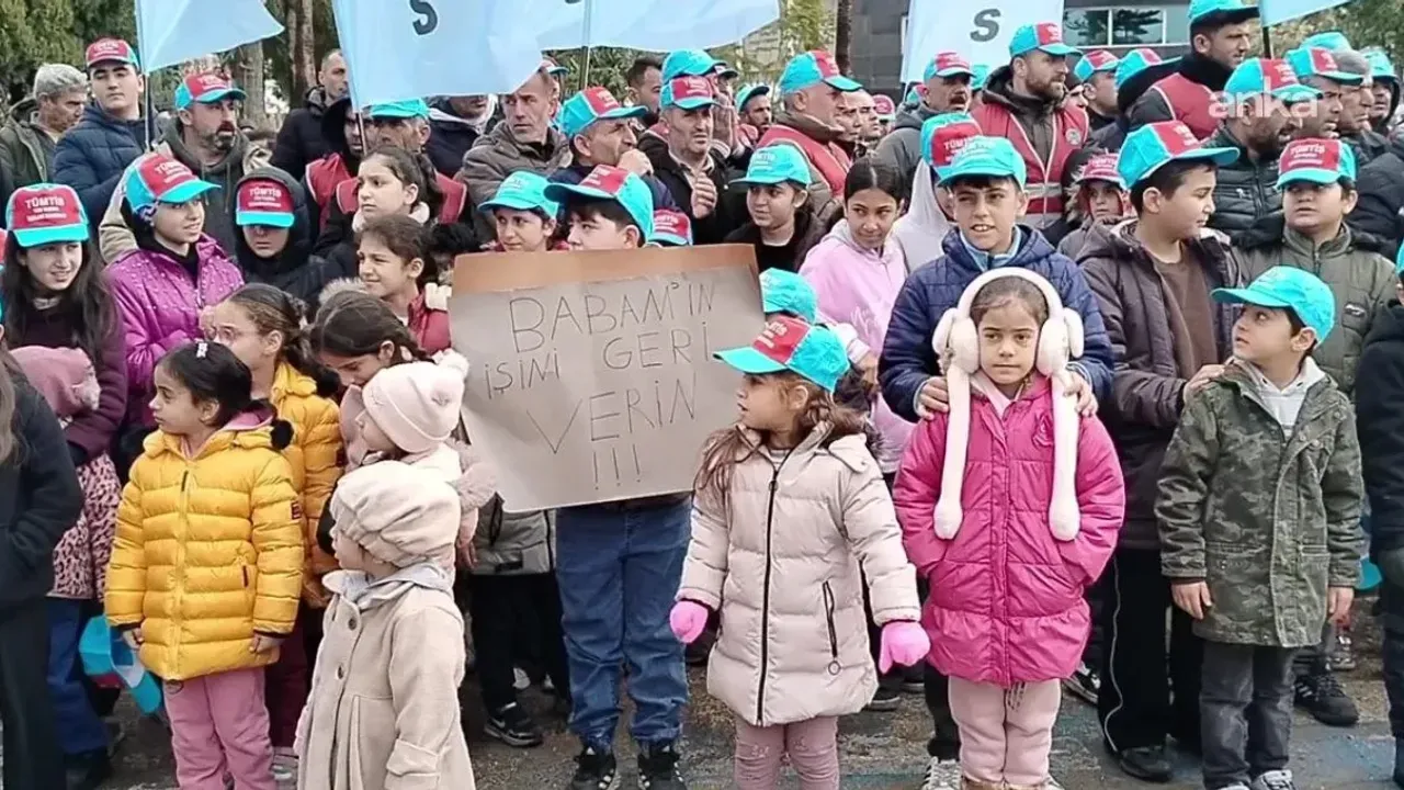 Liman A Kapısı önünde toplanan işçiler, eşleri ve çocuklarıyla birlikte MIP binasına yürüdü. Eylemde çocuklar, 'Babamın işini geri verin' yazılı dövizler taşıyarak dikkat çekti. İşçiler ve aileleri, sloganlarla işten çıkarmalara tepki gösterdi.
