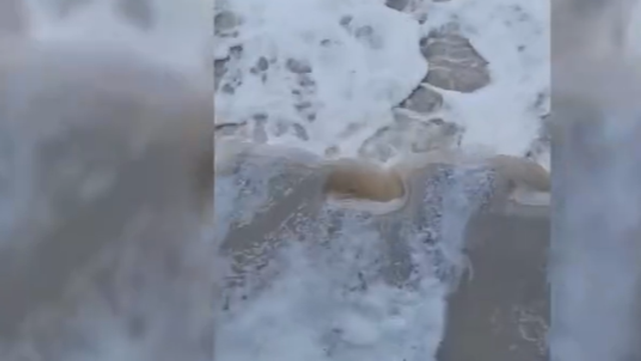 Atıklar nedeniyle nehir yüzeyinde yoğun köpük oluşumu gözlemlendi.