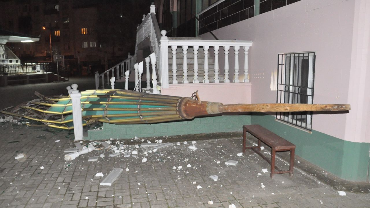 Minarenin külahı koptu, çok sayıda ağaç devrildi
