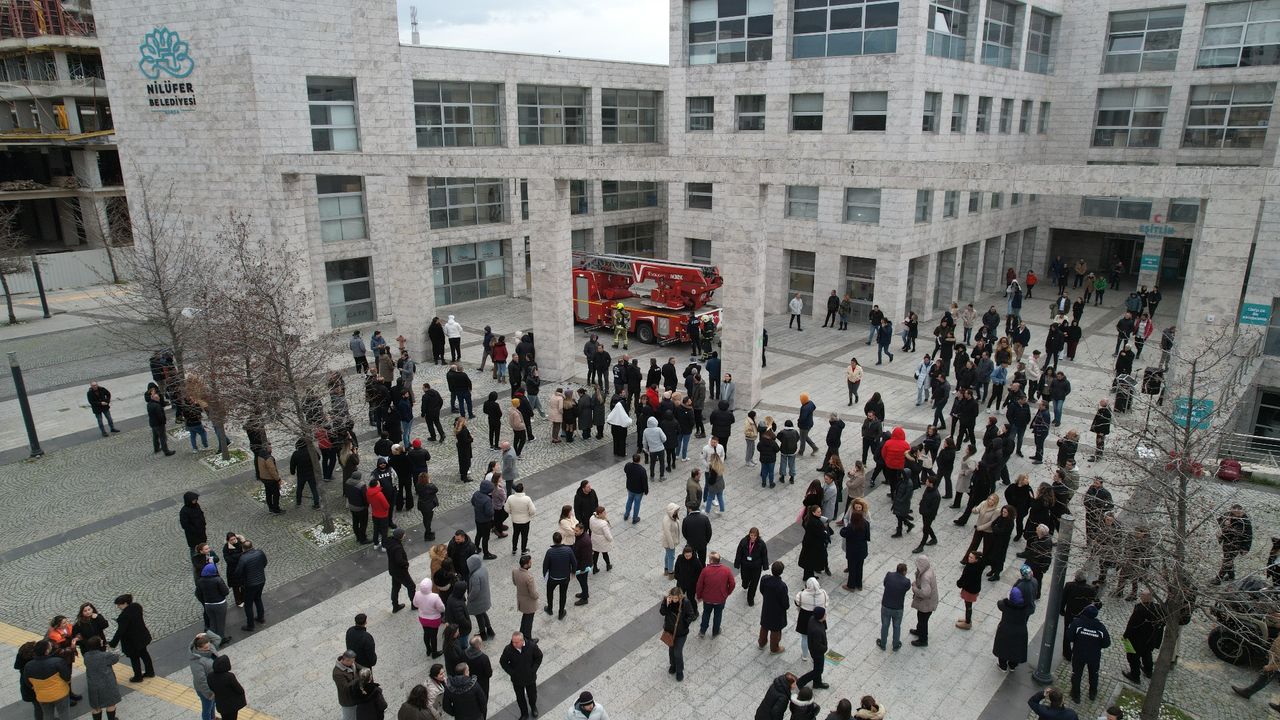 Nilüfer Belediyesi, hem çalışanları hem de vatandaşları, olası afetlere karşı bilinçlendirmek ve farkındalık oluşturmak amacıyla çalışmalarını sürdürüyor. Bu kapsamda Nilüfer Belediyesi’nde gerçeği aratmayacak bir yangın tatbikatı gerçekleştirdi.